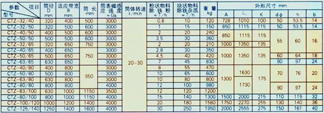 CTZ系列中场强永磁滚筒(分半磁和全磁两种磁系结构)多用于对粉状、颗粒状、小块状物料的净化处理,或对铁质的回收利用,对防止破碎机、研磨机、压榨机的破坏和磨损起着可靠的保护作用。广泛应用于冶金、陶瓷、磨料磨具、金钢砂、非金属矿、耐火材料、矿山、食品、化工、玻璃、建材等行业。